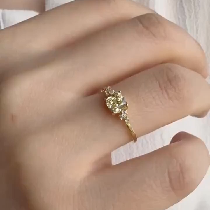 Cushion Cut Citrine Yellow Sterling Silver Yellow Gold Engagement Ring
