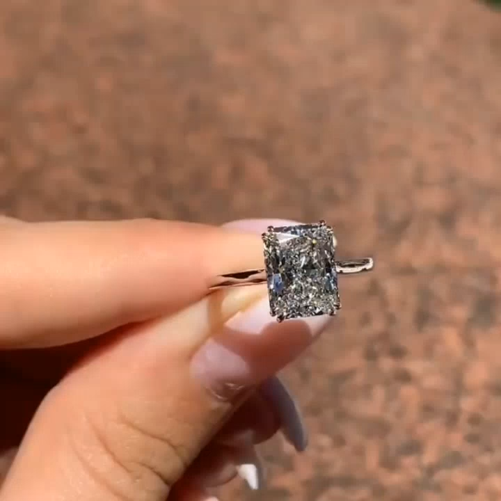 Diamond White Radiant Cut Classic Engagement Ring in 925 Sterling Silver