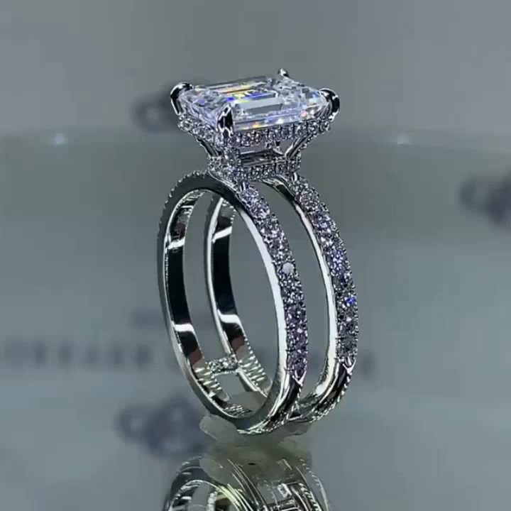 Emerald Cut Diamond White Engagement Ring in 925 Sterling Silver