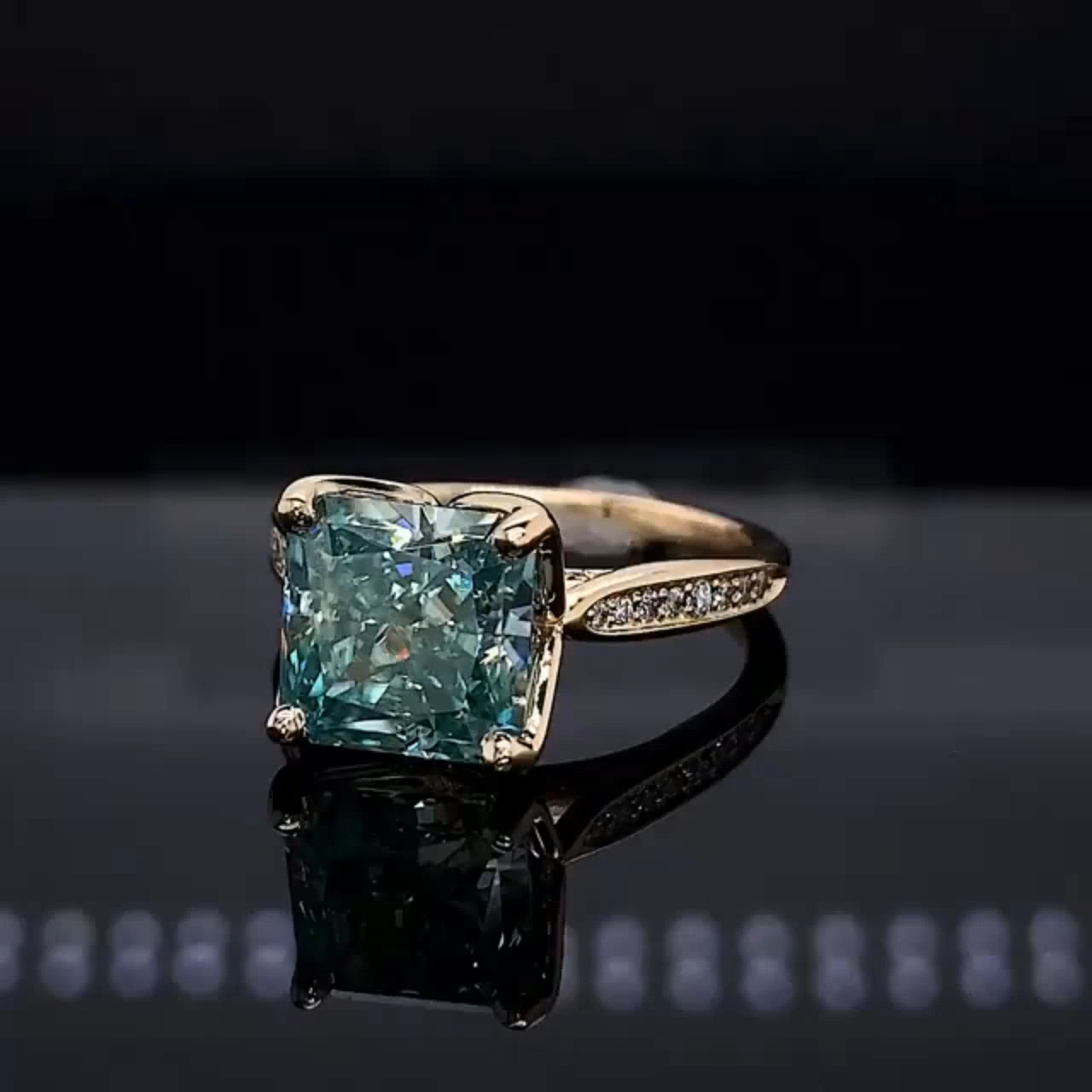 Emerald Green Princess Cut Yellow Gold Engagement Ring in 925 Sterling Silver