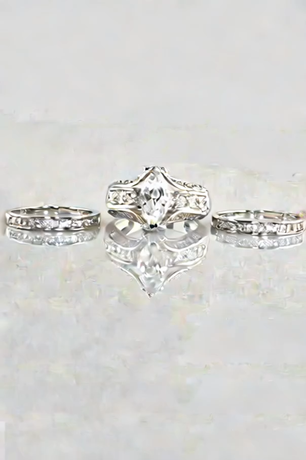 Marquise Cut Diamond White 3-piece Bridal Sets in 925 Sterling Silver