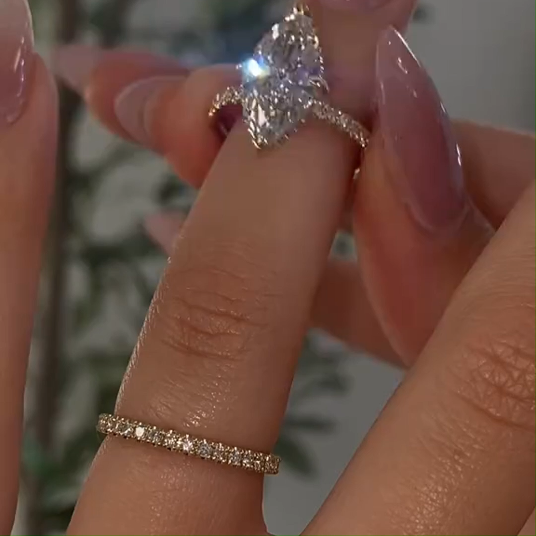 Marquise Cut Diamond White 925 Sterling Silver Yellow Gold Hidden Halo Wedding Ring Set
