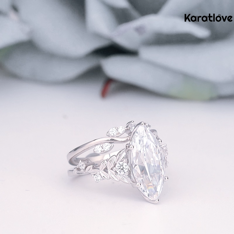 Marquise Cut Diamond White Sterling Silver Art Deco Bridal Ring Sets