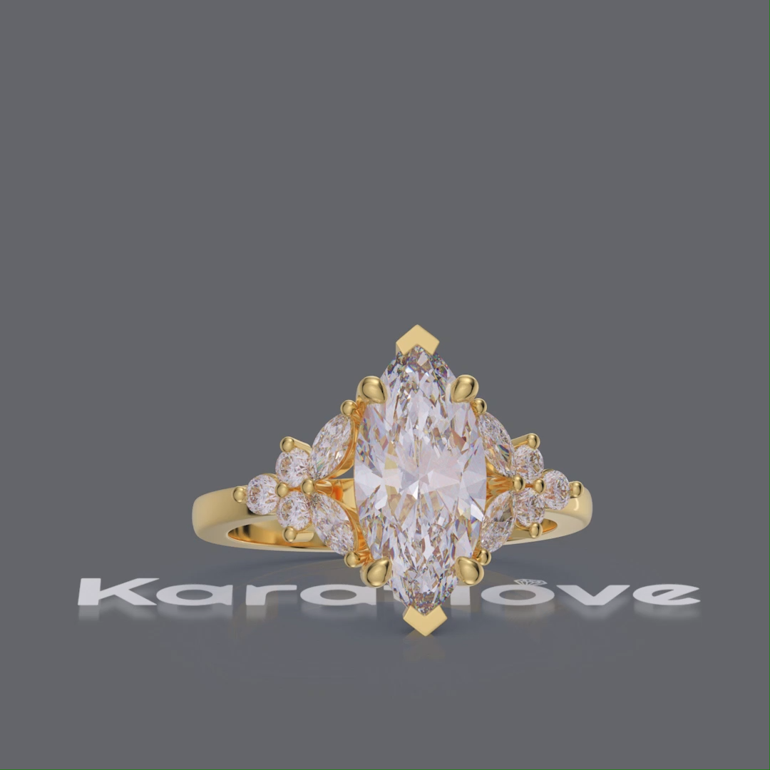 Marquise Cut Diamond White Sterling Silver Engagement Ring