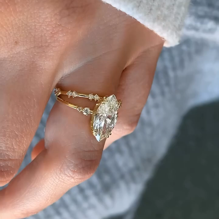 Marquise Cut Diamond White Sterling Silver Yellow Gold Bridal Sets