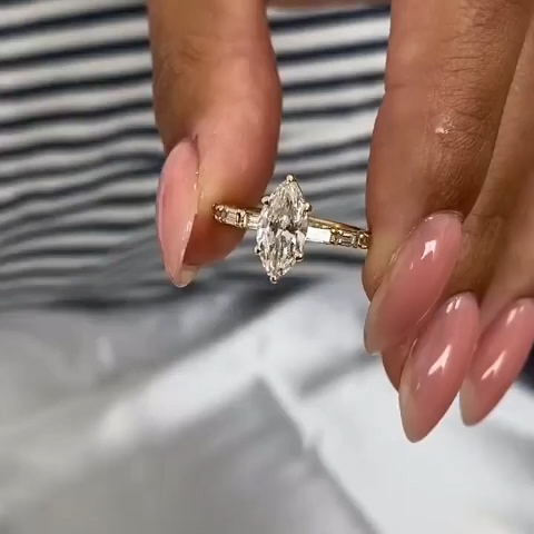 Marquise Cut Diamond White Sterling Silver Yellow Gold Engagement Ring