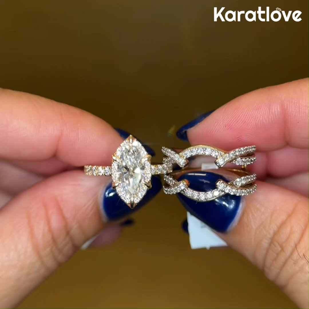 Marquise Cut Diamond White Sterling Silver Yellow Gold Halo Enhancer Bridal Ring Sets