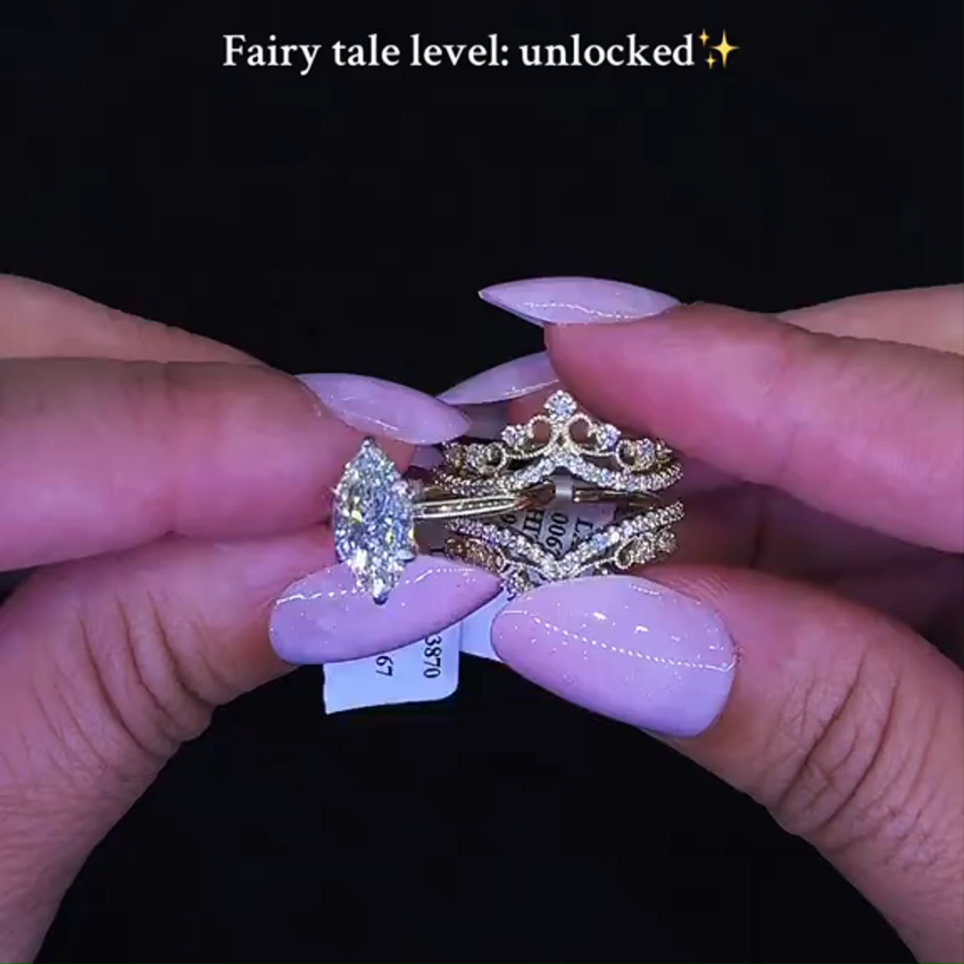 Marquise Cut Diamond White Yellow Gold Sterling Silver Insert Wedding Ring Set