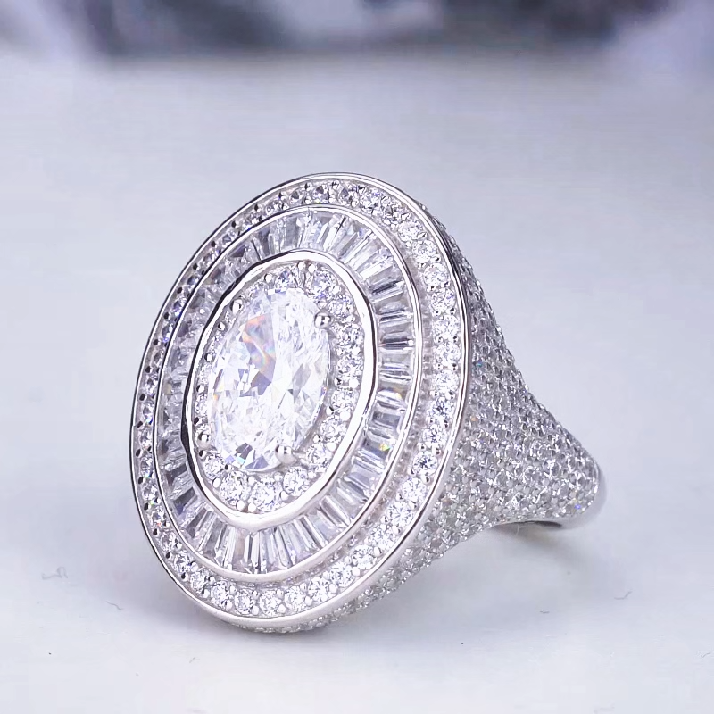 Oval Cut Diamond White Sterling Silver Halo Engagement Ring