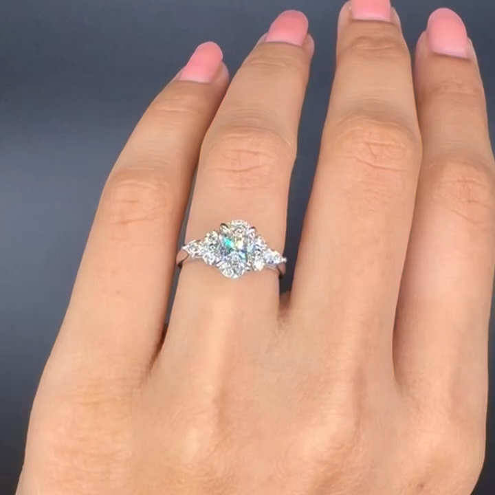 Oval Cut Diamond White Sterling Silver Engagement Ring