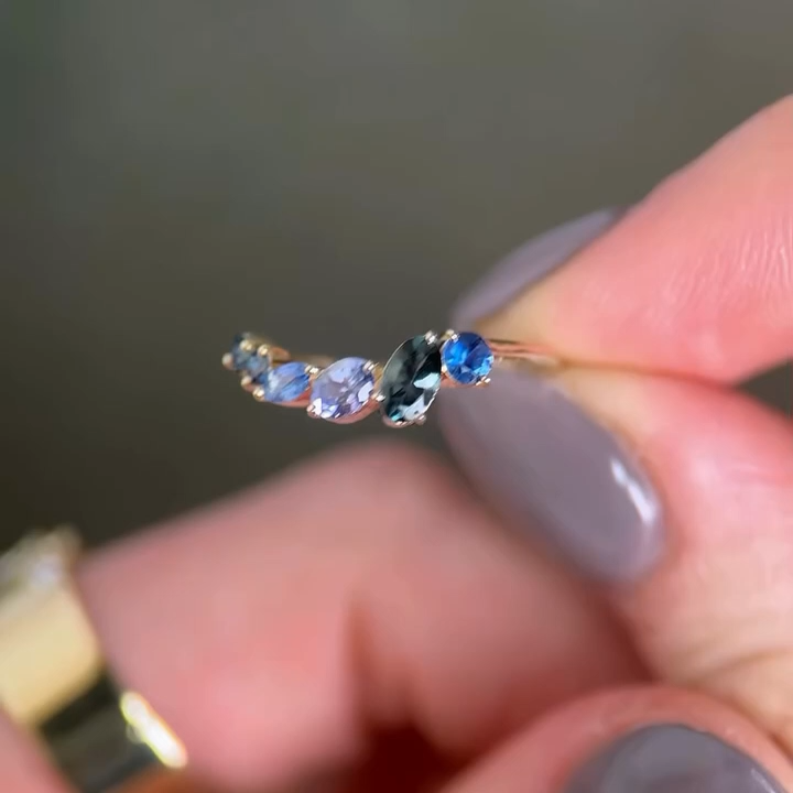 Side Stone Color : Aquamarine Blue Sapphire Blue