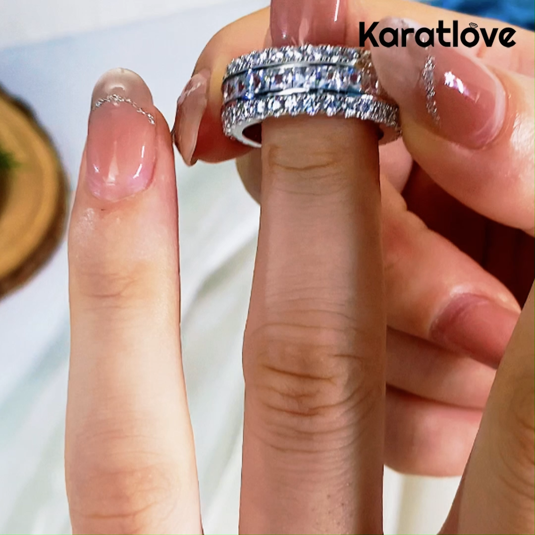 Princess Cut Diamond White Band in 925 Sterling Silver