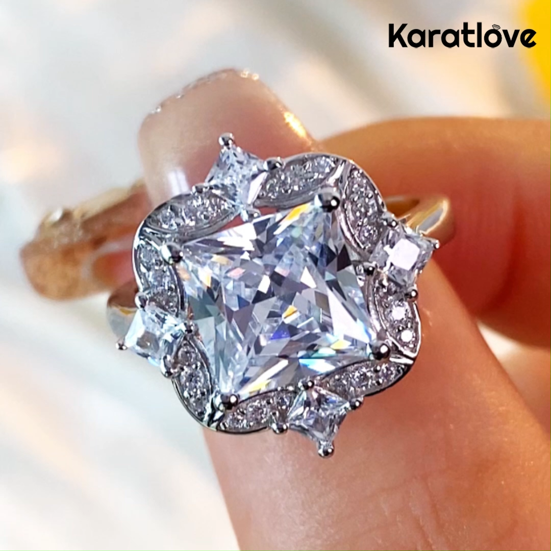 Princess Cut Diamond White Sterling Silver Halo Engagement Ring