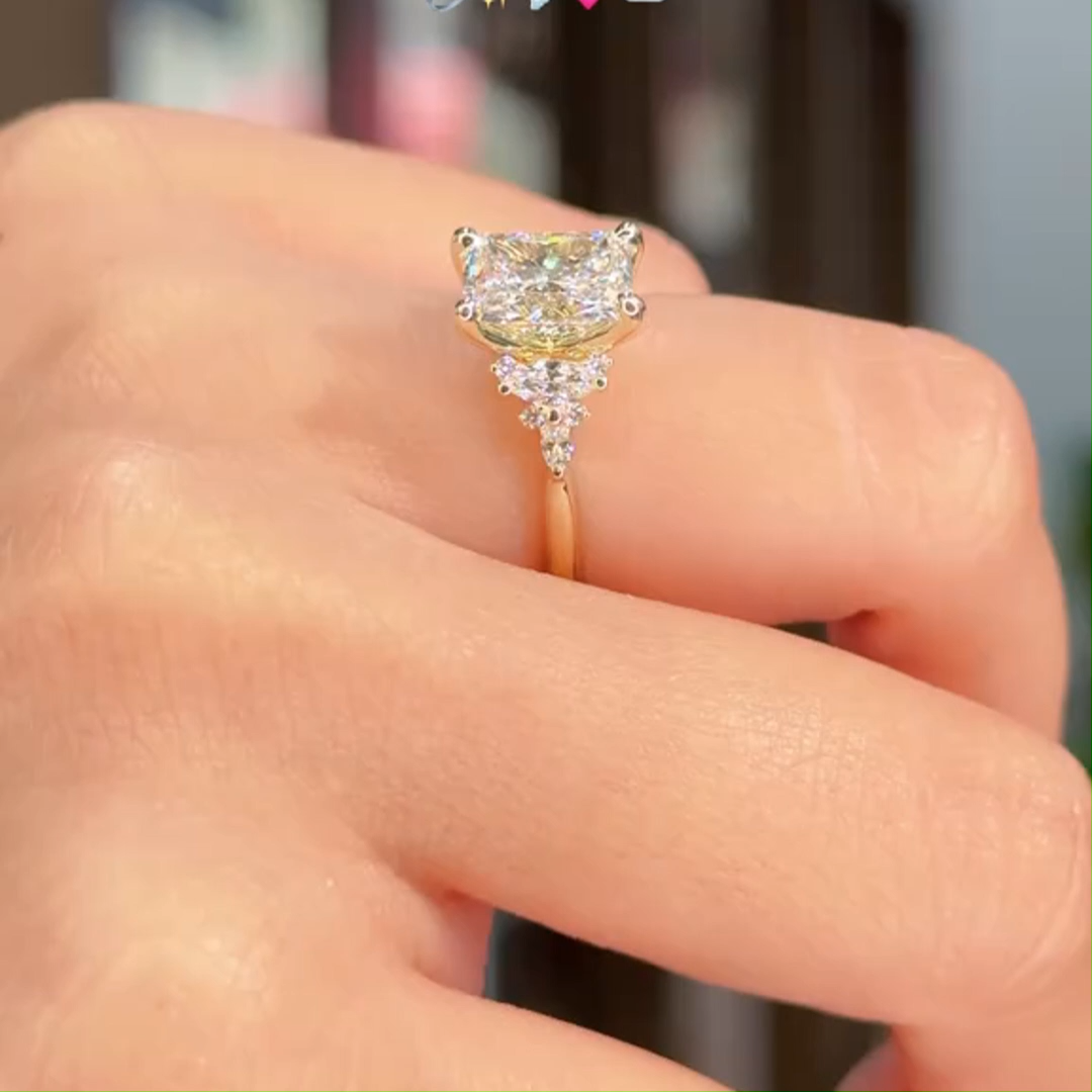 Radiant Cut Diamond White 925 Sterling Yellow Gold 3-Stone Engagement Ring