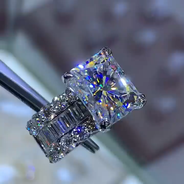 Radiant Cut Diamond White Engagement Ring in Sterling Silver