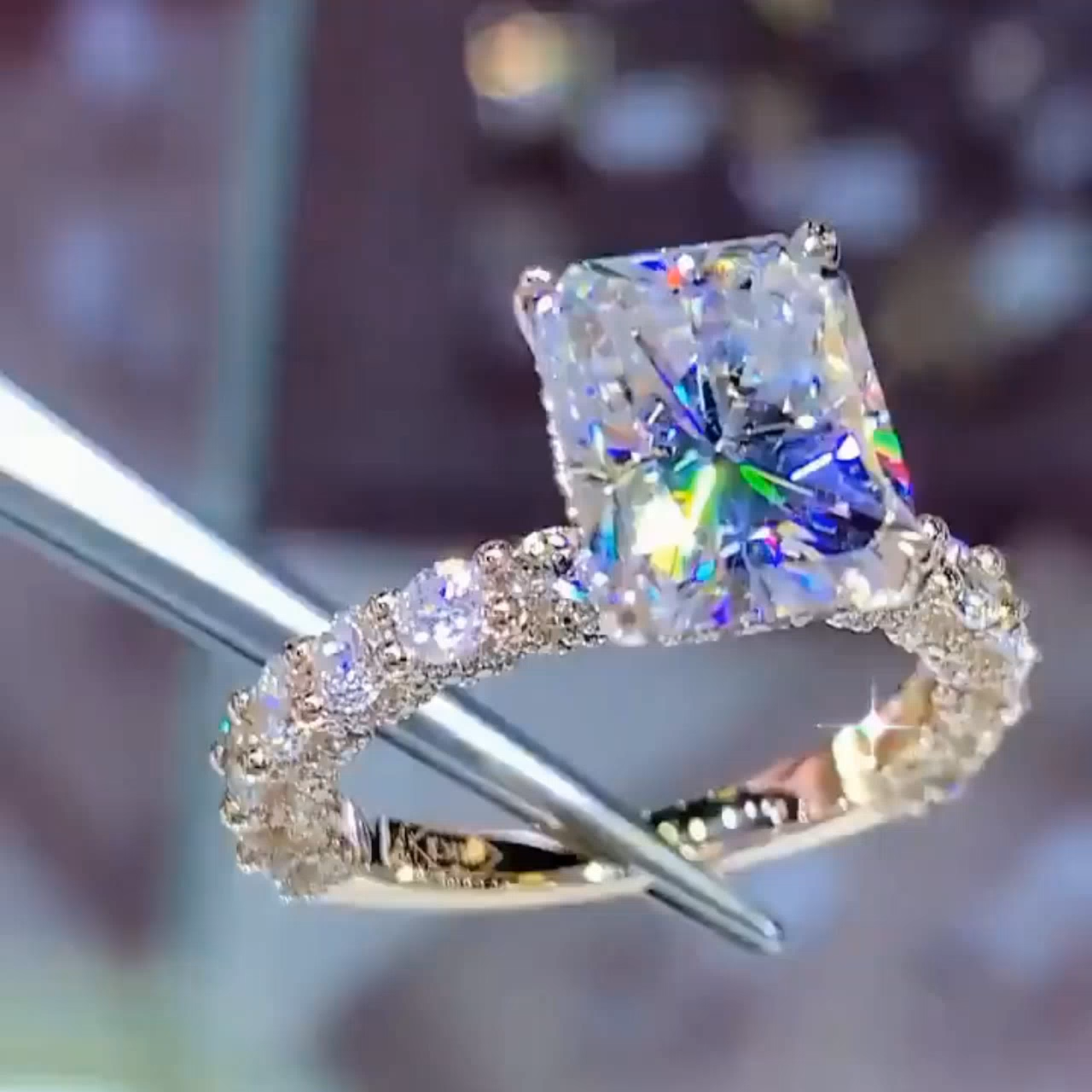 Radiant Cut Diamond White Yellow Gold Art Deco Engagement Ring in 925 Sterling Silver