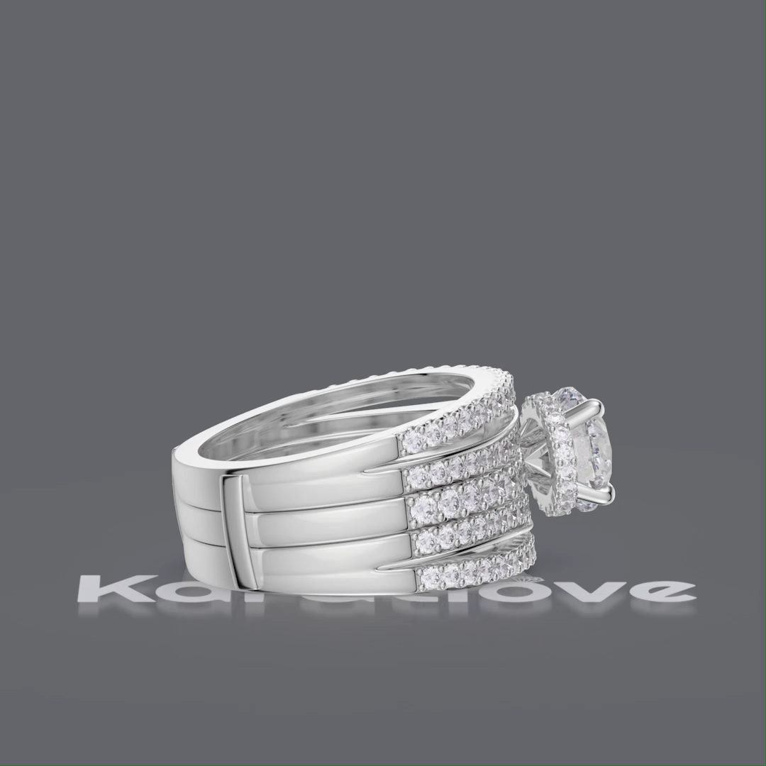 Round Cut Diamond White Insert Sterling Silver Hidden Halo Jacket Bridal Sets