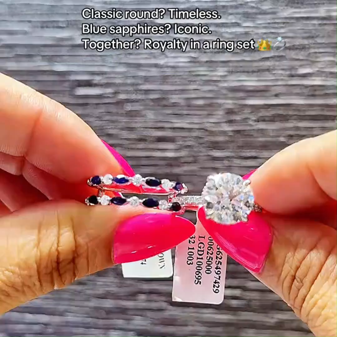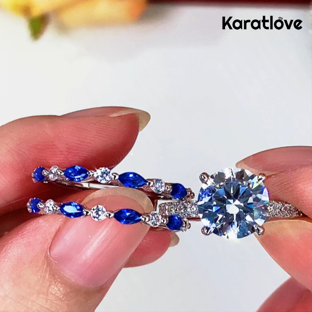Round Cut Diamond White Sapphire Blue Sterling Silver Insert Wedding Ring Set