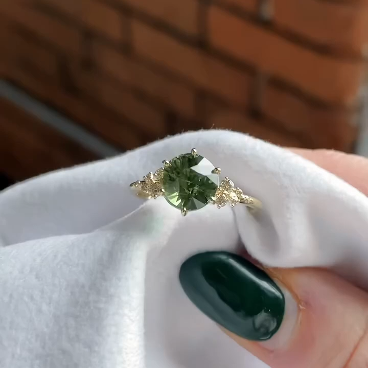 Round Cut Peridot Green Sterling Silver Yellow Gold Engagement Ring