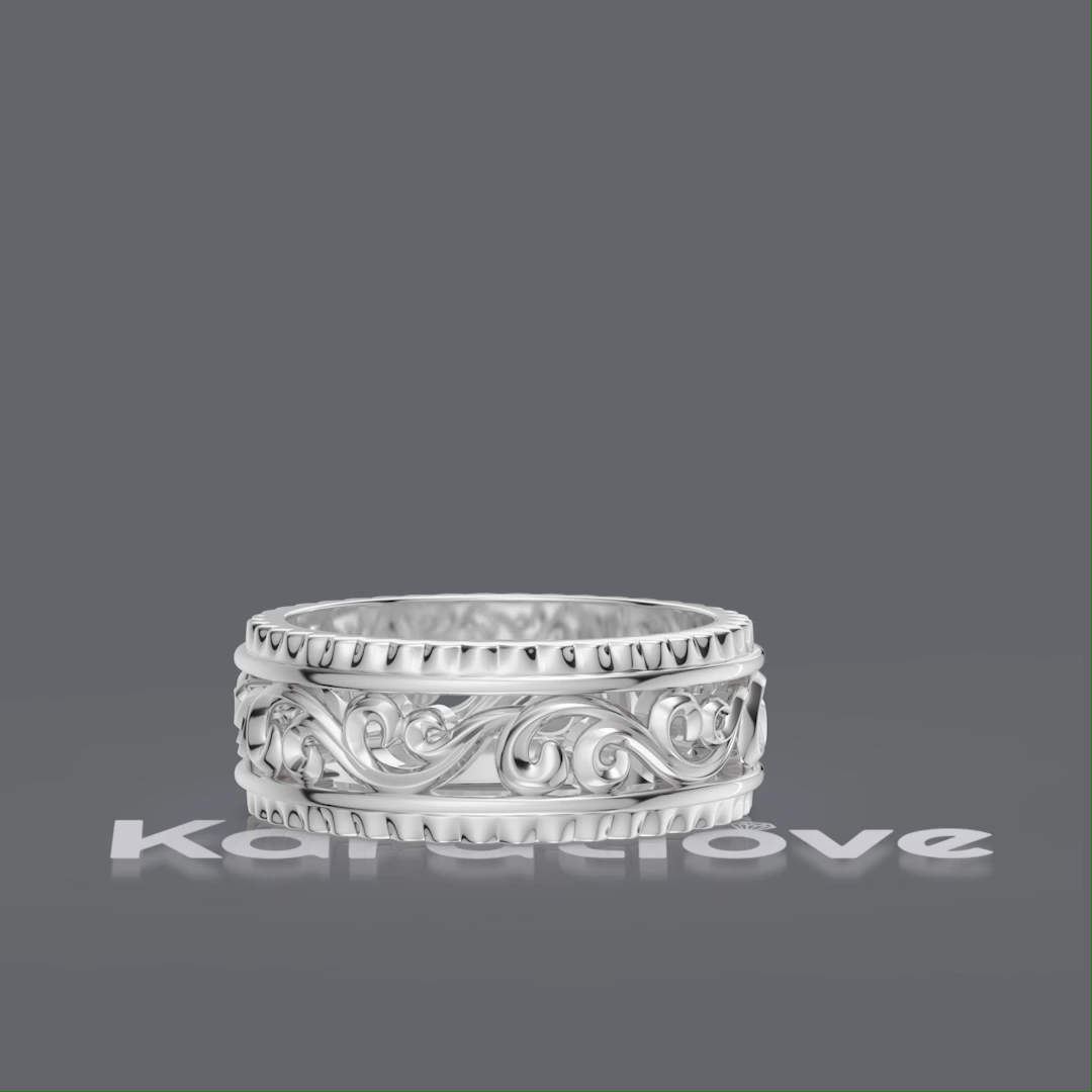 Sterling Silver Wedding Ring with Hollowed-out Patterns