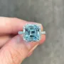 • Asscher Cut Aquamarine Sterling Silver Halo Engagement Ring