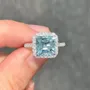 • Asscher Cut Aquamarine Sterling Silver Halo Engagement Ring