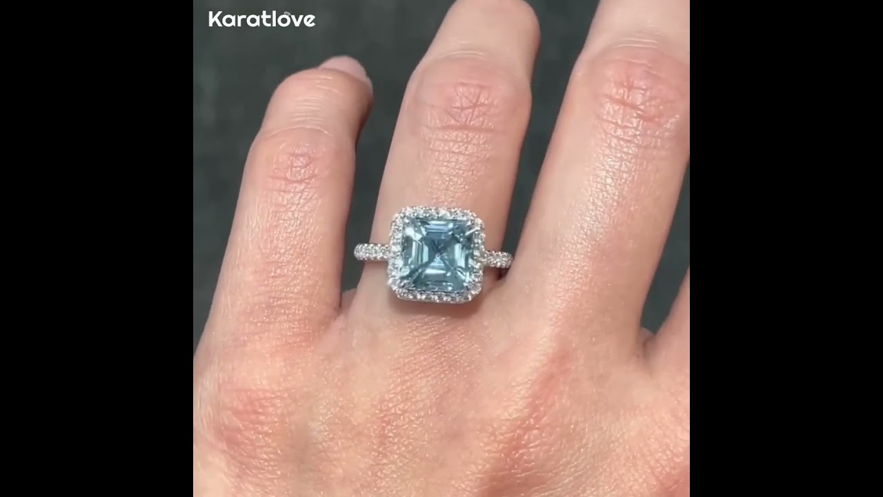 Asscher Cut Aquamarine Sterling Silver Halo Engagement Ring