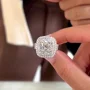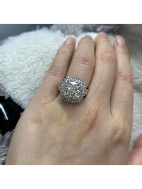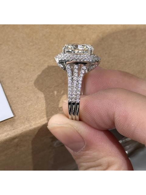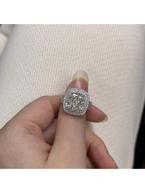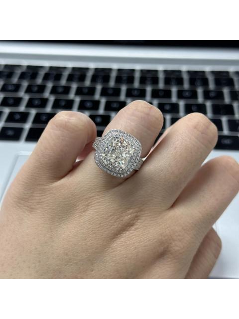 Cushion Cut Diamond White Sterling Silver Double Halo Engagement Ring
