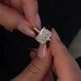 • Radiant Cut Diamond White 925 Sterling Silver Yellow Gold Double Hidden Halo Engagement Rings
