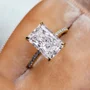 • Radiant Cut Diamond White 925 Sterling Silver Yellow Gold Hidden Halo Engagement Ring