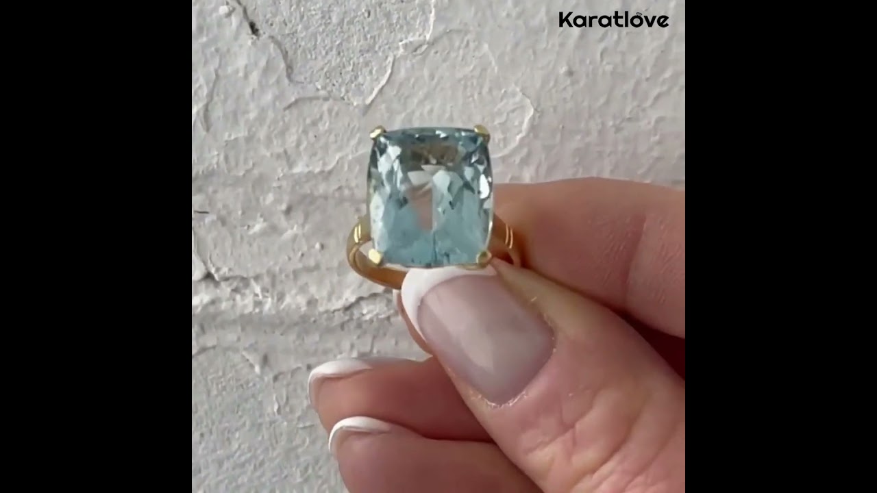 Cushion Cut Aquamarine Sterling Silver Yellow Gold Solitaire Engagement Ring