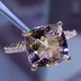 Cushion Cut Champagne 925 Sterling Silver Rose Gold Hidden Halo Engagement Ring
