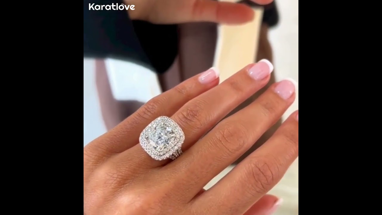 Cushion Cut Diamond White Sterling Silver Double Halo Engagement Ring