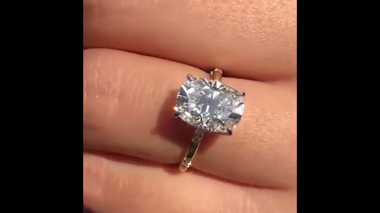 Cushion Cut Diamond White Sterling Silver Halo Yellow Gold Engagement Ring