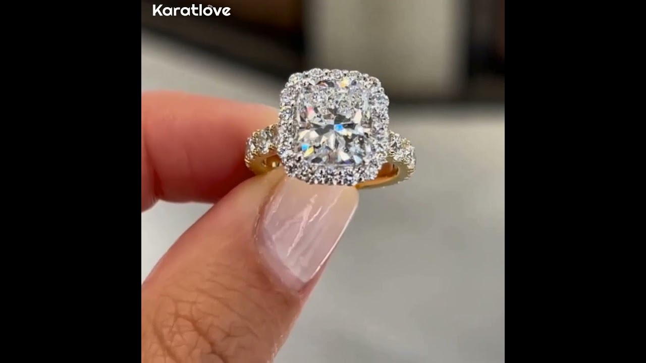Cushion Cut Diamond White Sterling Silver Yellow Gold Halo Engagement Ring