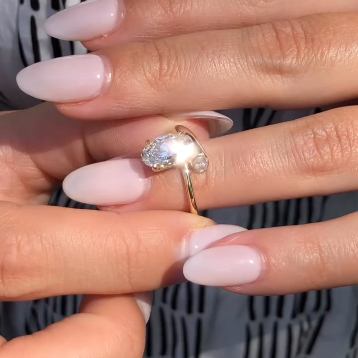 Ovaler Schnitt Diamant Weiß Sterlingsilber Gelbgold Verlobungsring