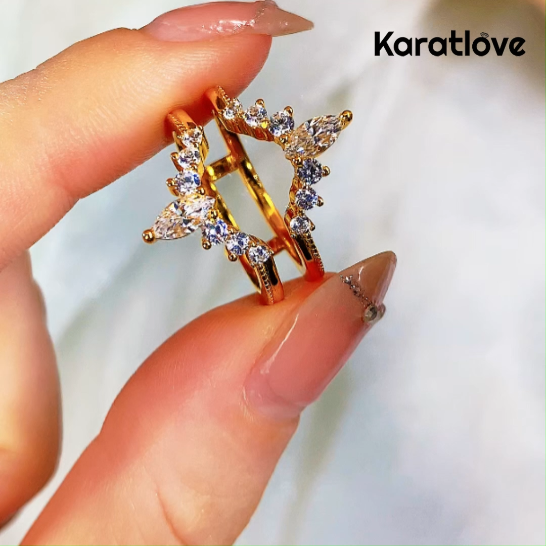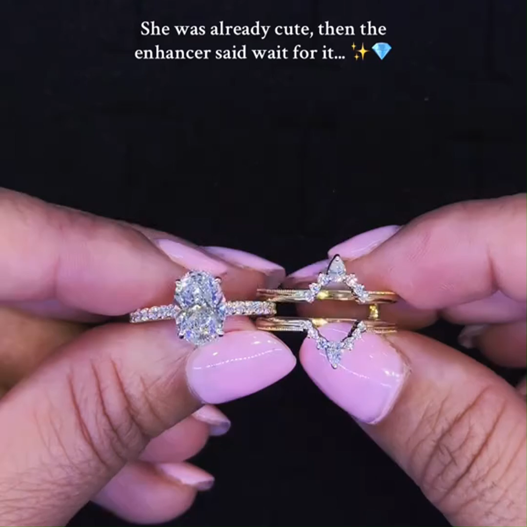 Ovaler Schnitt Diamant Weiß Gelb Gold Sterlingsilber Einlage Hochzeitsring Set