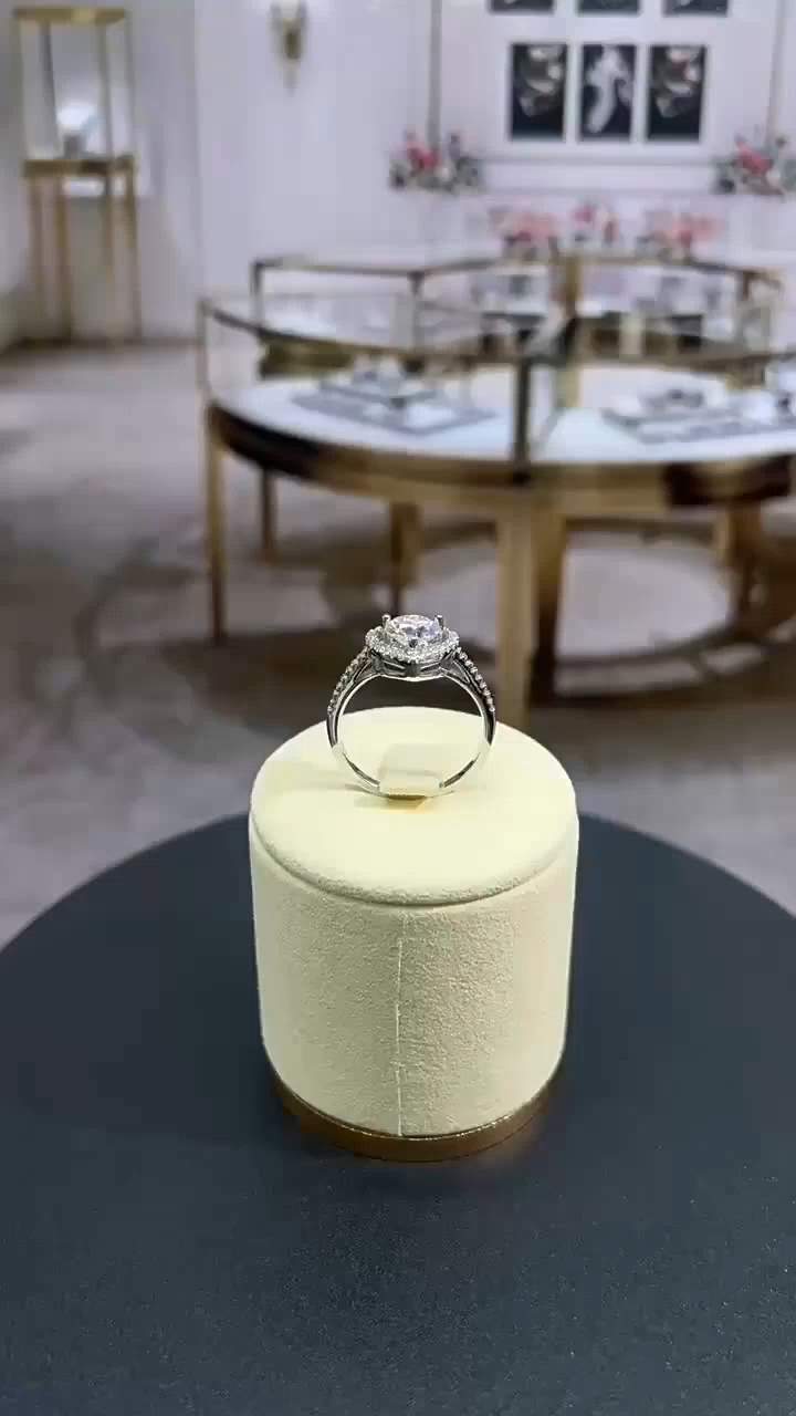Runder Moissanit-Diamant Weiß 925 Sterling Silber Halo Verlobungsring
