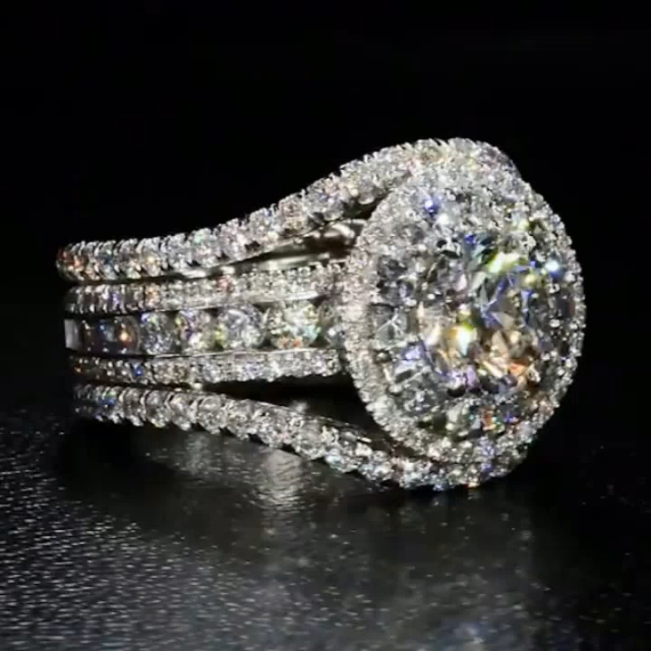 Diamond White Round Cut Halo Engagement Ring in Sterling Silver