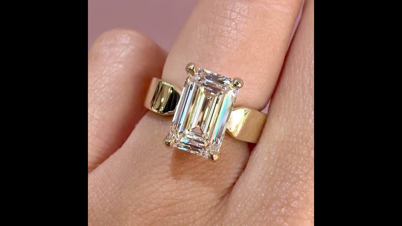 Emerald Cut Diamond White 925 Sterling Yellow Gold Engagement Ring
