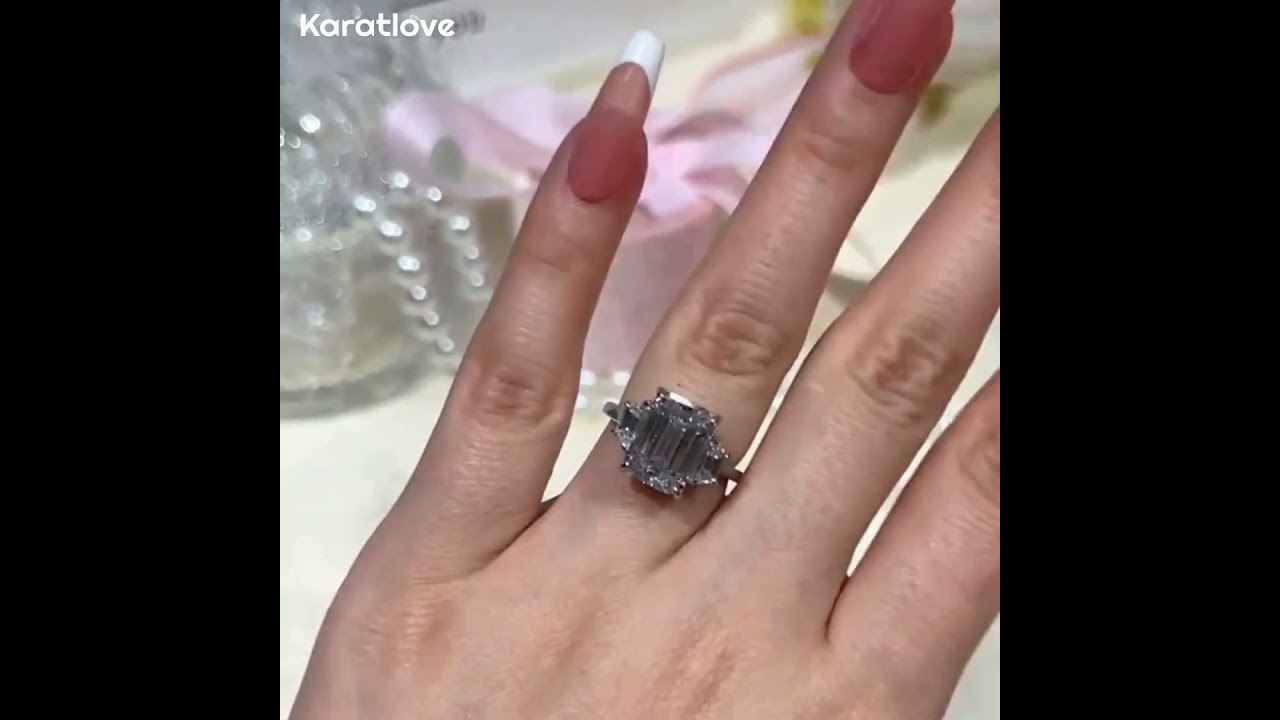 Emerald Cut Diamond White Sterling Silver 3-Stone Engagement Ring
