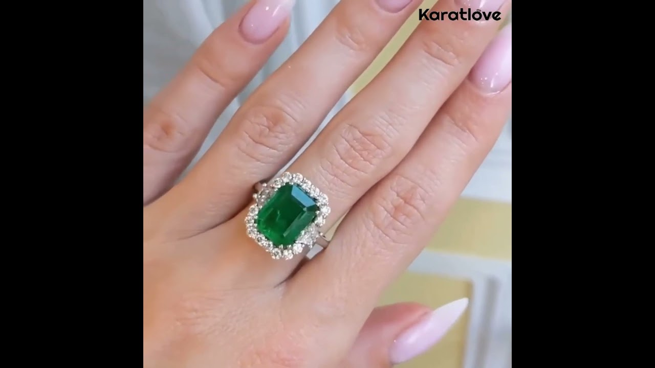 Emerald Cut Emerald Green 925 Sterling Silver Halo Engagement Ring