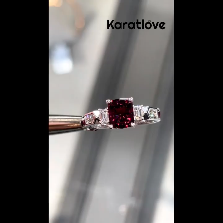 Emerald Cut Ruby 925 Sterling Silver 3-Stone Engagement Ring