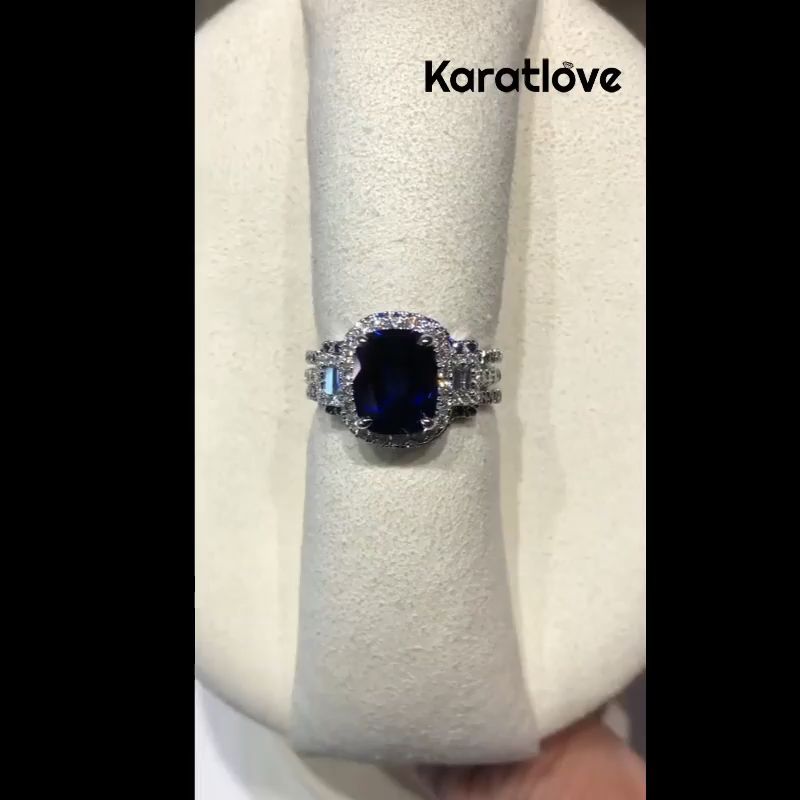 Conjunto de Anillos de Novia de 3 Piezas en Plata de Ley 925 con Zafiro Azul Corte Cojín