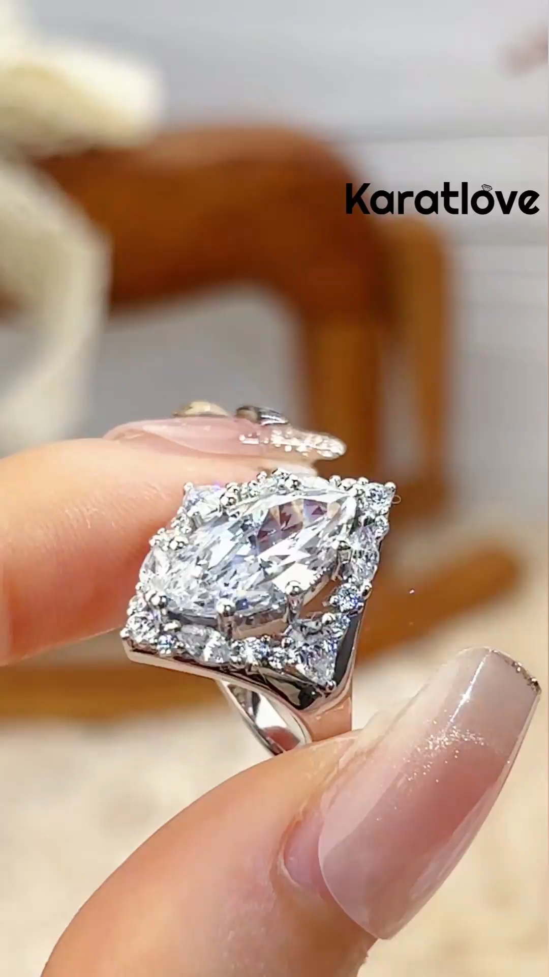 Anillo de compromiso con diamante corte marquesa y halo de plata esterlina 925 blanca