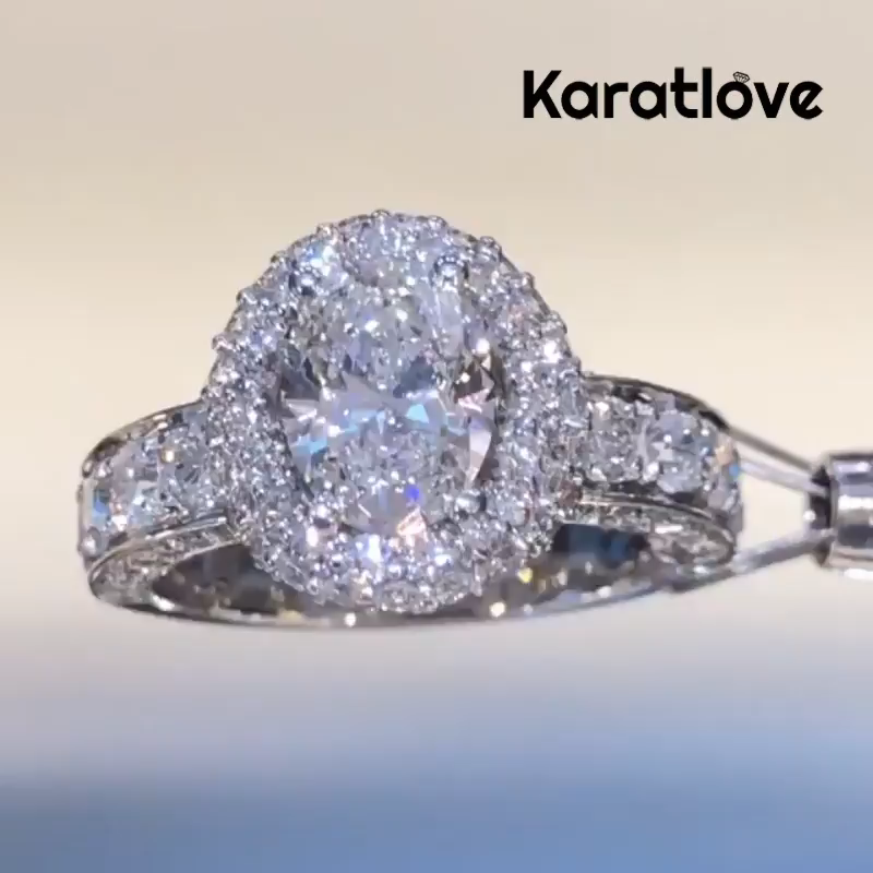 Anillo de compromiso con diamante cortado en óvalo y halo de plata esterlina 925 blanca