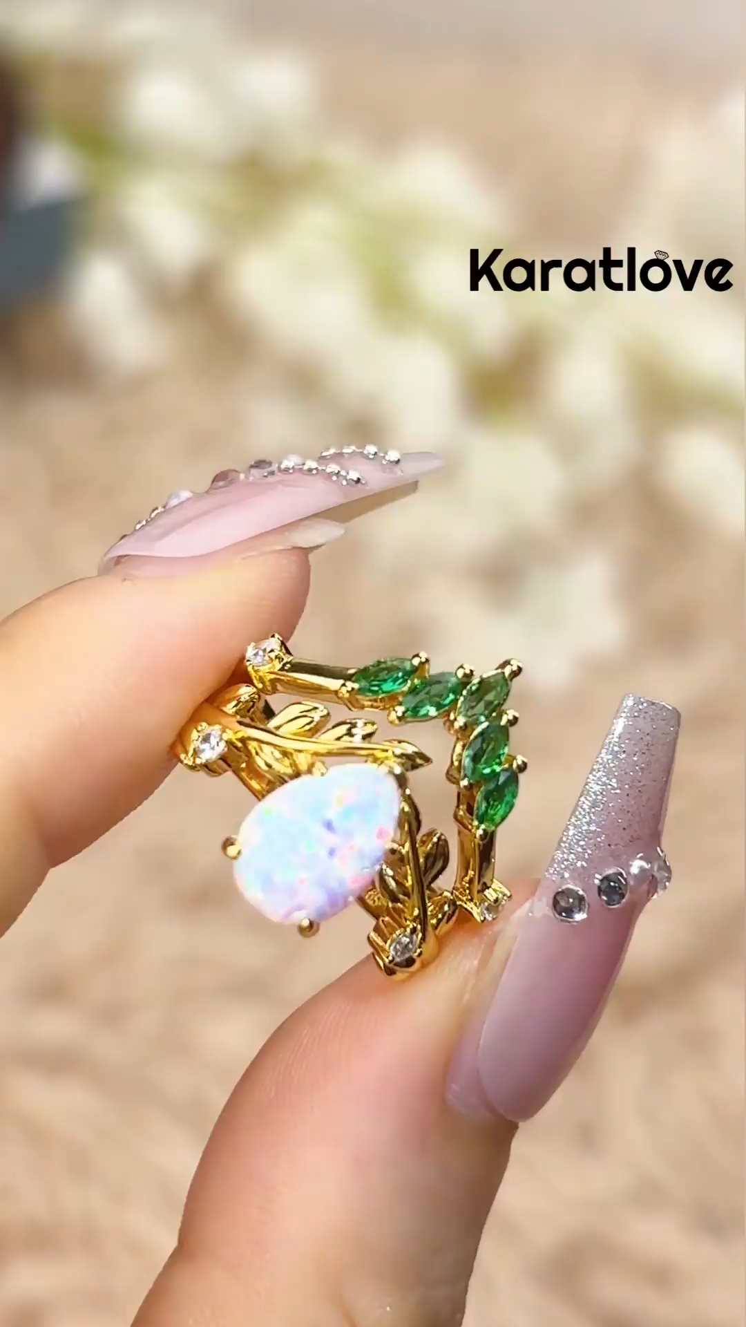 Anillo de boda de conjunto inspirado en la naturaleza de ópalo cortado en pera, plata esterlina 925, oro amarillo Art Deco
