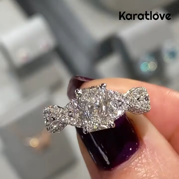 Anillo de Compromiso Retorcido de Plata Esterlina 925 con Diamante Cortado Radiante Blanco