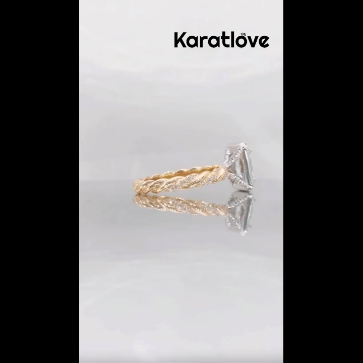 Anillo de compromiso con diamante corte radiante, plata esterlina blanca y halo trenzado de oro amarillo