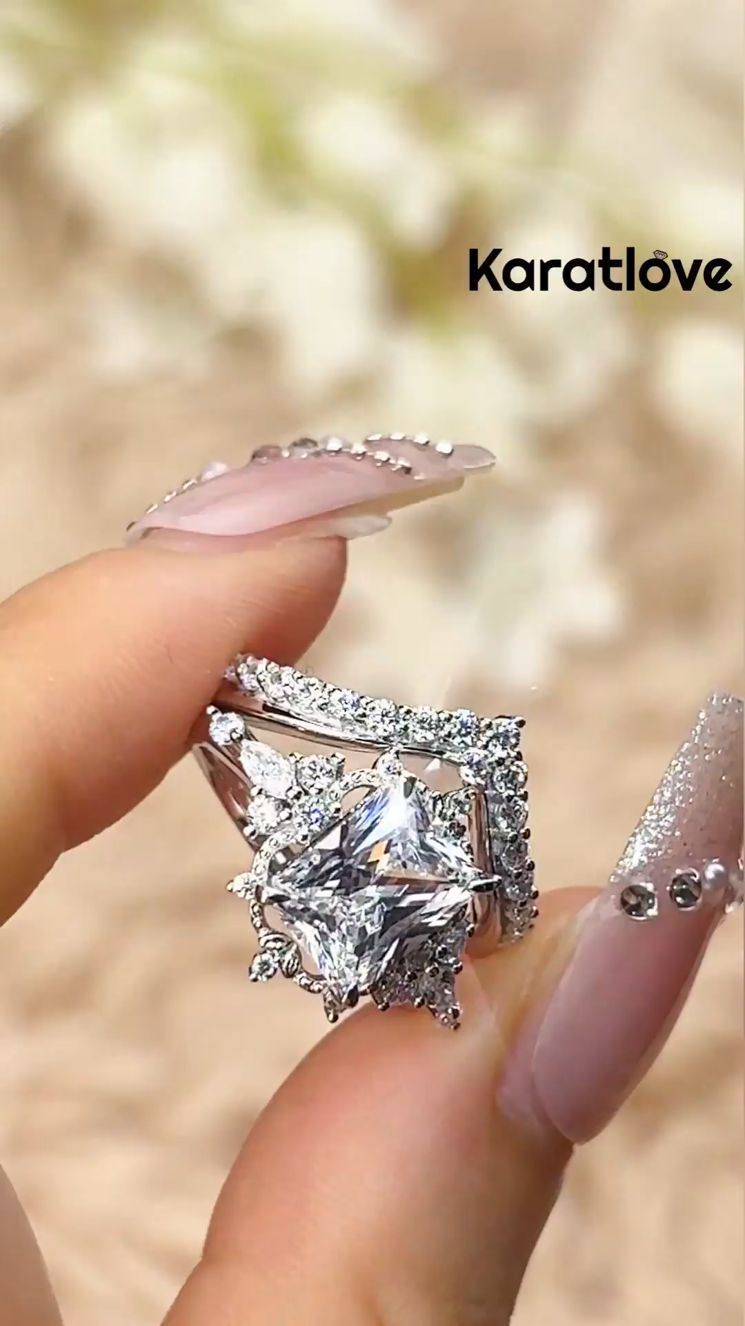 Conjunto de anillos de boda de plata esterlina blanca 925 con diamante cortado radiante vintage